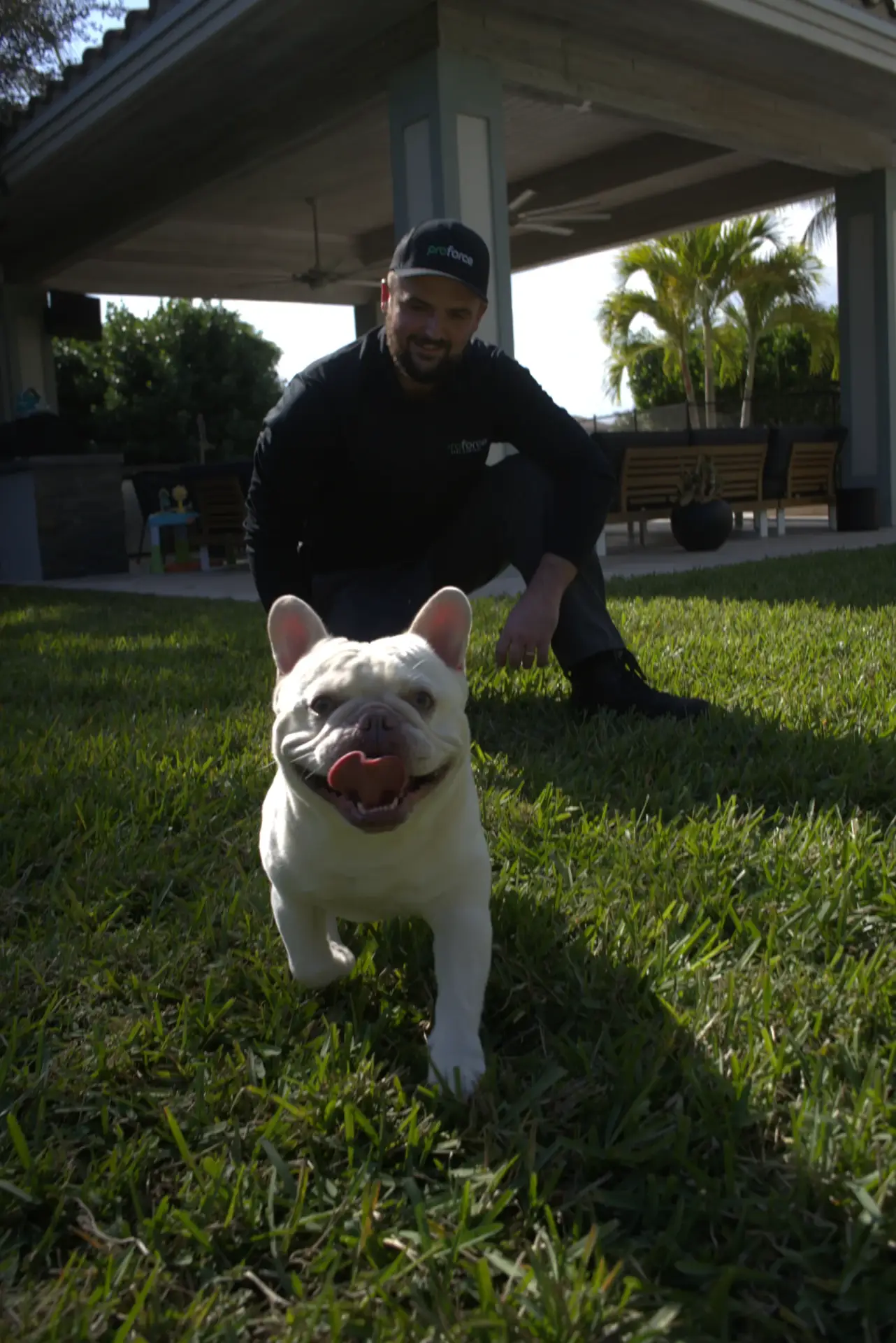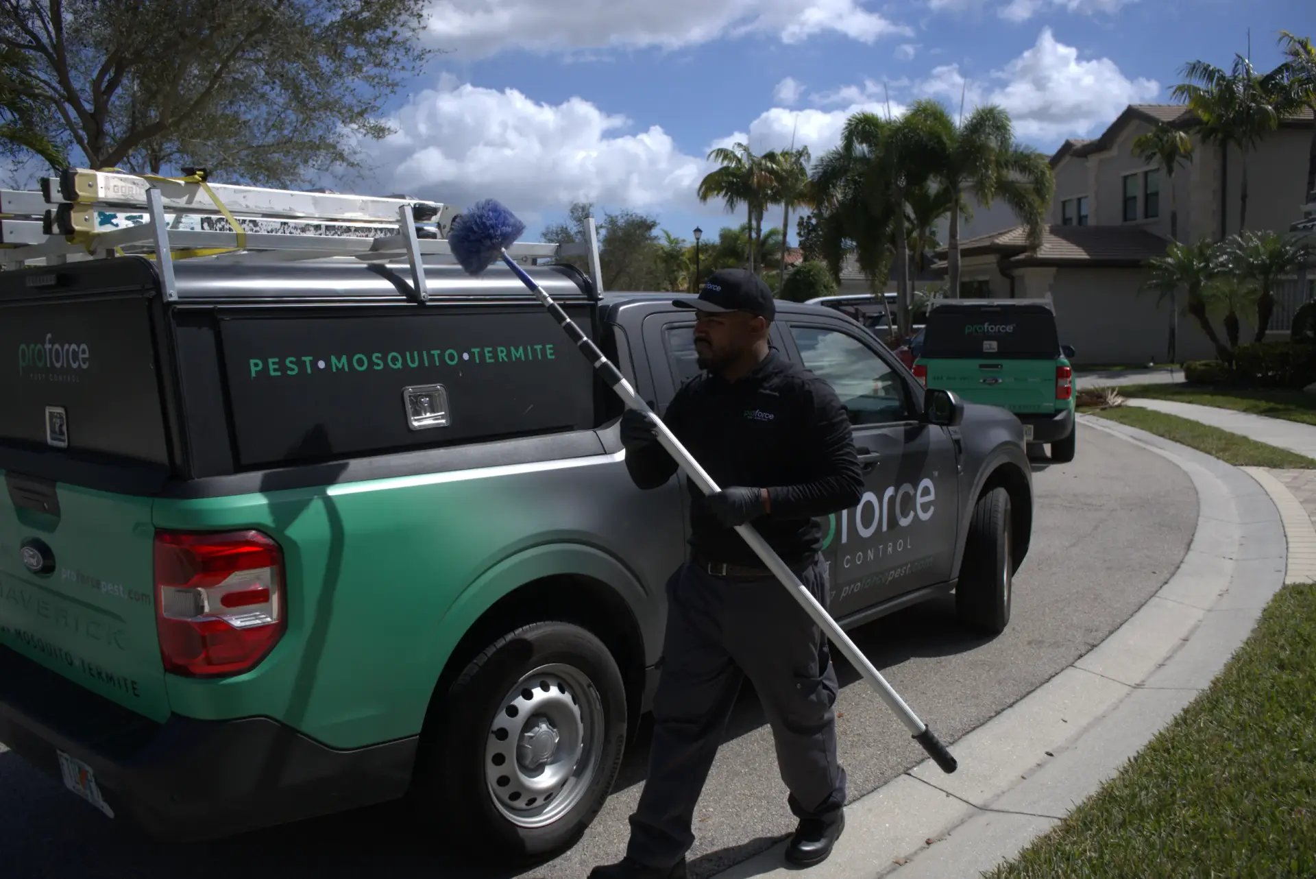 a proforce pest control technician providing a treatment to a client's house